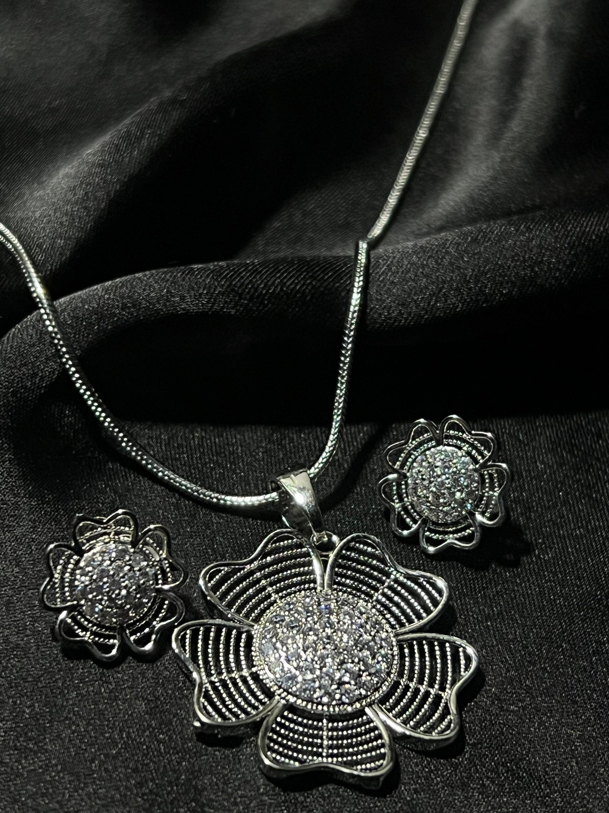 Add a touch of elegance to your look with our Crystal Drop with Earrings set. Featuring a stunning crystal pendant paired with matching drop earrings, this set is designed to sparkle with every movement. Perfect for both everyday charm and special occasions, it effortlessly blends simplicity with sophistication. Lightweight, eye-catching, and timeless — it's the perfect finishing touch to elevate any outfit.